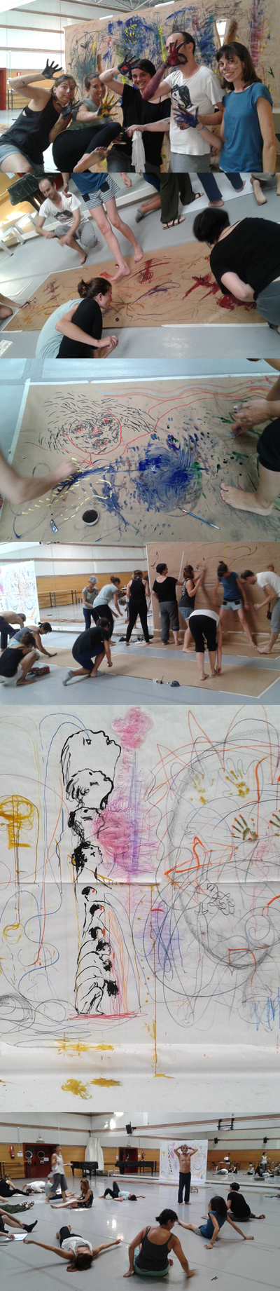 04/agosto/2015 Taller "Remover para ilustrar" en Ilustratour 2015. 01 Han pasado muchas cosas desde el lunes 20 en que comenzó nuestro taller y ha sido tan intenso que hasta ahora no hemos encontrado ni un hueco para poder contarlo brevemente.No me cansaré de repetir la gozada que ha sido contar con el espacio y el apoyo de la Compañía Nacional de Danza. Ha sido un viaje impresionante. Lo más importante es todo lo que se agita y descubres cuando conectas activamente con tu cuerpo para trabajar desde las sensaciones, con los cinco sentidos activos. Nuevos procesos y conexiones que multiplican ideas desde un lado más profundo. |
