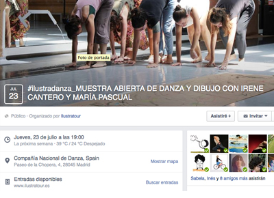 15/julio/2015 #ilustradanza_MUESTRA ABIERTA DE DANZA Y DIBUJO El Jueves, 23 de julio a las 19:00h en la Compañía Nacional de Danza, organizaremos #ilustradanza_MUESTRA ABIERTA DE DANZA Y DIBUJO CON IRENE CANTERO Y MARÍA PASCUAL. Una performance gráfica en la que podremos disfrutar de los resultados del taller "Remover para ilustrar", desarrollado del 20 al 23 de Julio en Ilustratour. La bailarina y coreógrafa Irene Cantero y yo, acompañaremos al grupo de asistentes al taller en esta muestra abierta en la que trabajaremos con la improvisación como herramienta creativa para mezclar dibujo y movimiento.Actividad gratuita con aforo limitado. Es imprescindible confirmar asistencia en hola@ilustratour.es, indicando: nombre, apellidos, correo electrónico y DNI. Entradas disponibles en Ilustratour.es Jueves 23 de Julio, a las 19h. Sede de la Compañía Nacional de Danza (Paseo de la Chopera, 4, 28045, Madrid) |