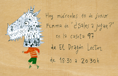 10/junio/2015 Firma de "¿Sales a jugar?" en la Caseta de El Dragón Lector. Quien tenga pensado darse un paseo esta tarde por la Feria del Libro de Madrid aprovechando la primera tarde sin solanera desde hace varias semanas, estaré firmando en la caseta de El Dragón Lector (número 97) de 18.30 a 20.30. Me encantará saludaros y dedicaros "¿Sales a jugar?"