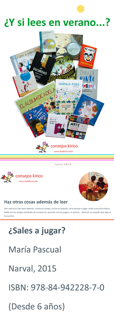 29/junio/2015 "¿Sales a jugar?" seleccionado en la maleta de verano del Club Kirico Otra gran noticia, "¿Sales a jugar?" ha sido incluido en la lista de recomendaciones y guía de verano del